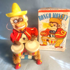 Vintage Bongo Monkey Battery Op Tin Plush Japan Org Box Works Watch 1960s