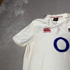 England Team Polo Shirt Mens Large While Blue Jersey Rugby White Canterbury *
