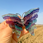 3.6" Natural Colored Fluorite Carved Butterfly Reiki Crystal Skull Decor Gift1pc