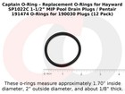 O-rings For Pentair 191474, 190030, Hayward Sp1022c 1-1/2” Drain Plugs (12 Pack)