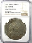 1732 Russia Anna Rouble 1r Silver Coin - Certified Au Details - Rare!