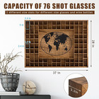 Large World Map 76 Slots Shot Glass Display Case 37 X 28'' Rustic Wood Shot Glas