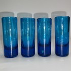 4 Hand Blown Recycled Mexican Solid Blue Glass Thick Base Shot Glasses 4” Tall