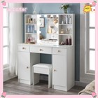 Vanity Table Set Led Makeup Mirror Dressing Table With Power Station For Female