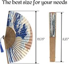 Folding Hand Fan For Women Wooden Bamboo Gan Wave Fan, Multicolor