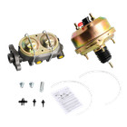 Universal 7" Firewall Mount Power Brake Pedal Dual Booster Master Disc/drum Kit