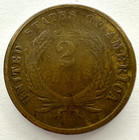 1865 Usa Two 2 Cents Coin, Copper, 23mm, Vg Very Good
