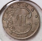 1873-p Three Cent Piece, Copper/nickel.over 100 Years Old [sn01]