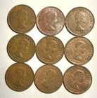 Old Australia Coin Lot - 1953-1964 - 9 Half Pennies - Complete Elizabeth Ii Set