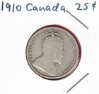 1910 Canada .925 Silver 25 Cents Quarter, 0.173 Oz Asw ~ Us$15+ In Silver