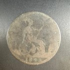 1893 Victoria One Penny 'bun Head' Heavily Circulated