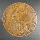 1916 Great Britain 1 Penny – George V, Well-worn Detail