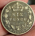 1855 Great Britain Queen Victoria Sterling Silver Sixpence.