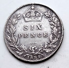 1895 Great Britain 6 Six Pence Silver .925 Coin / Queen Victoria - Very Fine +