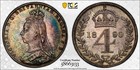 4 Pc 1890 Great Britain Victoria Pcgs Prooflike Rainbow Toned Silver Maundy Set
