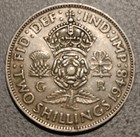 1948 Uk British 2 Shillings Crowned Rose Coin, Nice Condition
