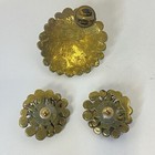 Vintage Stephen Burr 1977 Brass Artisan Modernist Floral Brooch Pin Earrings Set