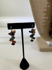 Vtg Amber & Turquoise Nugget Chunky Beaded Stone Necklace 32" Earrings Set Ds51
