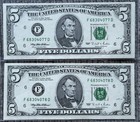 Error 5 Dollar Note Obstruction, With Consecutive Non-error Counterpart