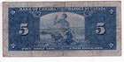 Bank Of Canada 1937 $5 Dollars Gordon-towers B/c Prefix Margin Tear Fine+ George