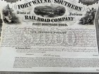 Fort Wayne & Southern Indiana Railroad Bond Certificate Stock Civil War Era 1864