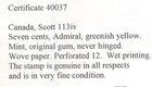Canada #113iv Very Fine Never Hinged **with Certificate**