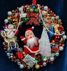 Vintage Christmas Ornament Wreath 16" Kitsch Retro Shiny Brite Santa Elf Decor
