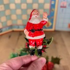 Lot 4 Vintage Plastic Mcm Holly Picks Glitter Berries And Santa Christmas Floral