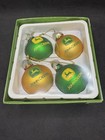 John Deere 4 Small Glass Ball Christmas Ornaments 2" Ball 2 Gold 2 Green W/ Box