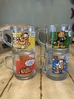 Checkered Set Of 4 Mcdonalds 1978 Garfield Glass Coffee Mugs/cups By Jim Davis