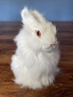 Vintage White Bunny Rabbit Real Fur Red Glass Eyes Taxidermy Animal