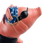 Fincks Overalls Piggy Bank, Cast Iron Pig W/ Antique Finish, Man Cave Bar Decor