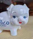 Vtg Corning Ware Blue Cornflower Ceramic Piggy Bank Made In England