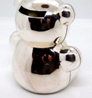 Vintage 1970s Teddy Bear Silver Plated Metal With A Bow Tie Coin Bank