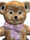 Vintage Teddy Bear Piggy Coin Bank Porcelain Brown Blue Eyes Adorable
