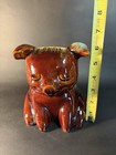 Ceramic Pottery Piggy Bank Japan Brown With Red Hat No Stopper Vtg