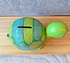 Vtg Small Turtle Tortoise Sitting Up Coin Money Bank Pink Green Yellow Colorful