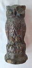 Vtg Metal Owl W/ Green Eyes Coin Bank - Manhattan Savings Bank, Still Bank 6"