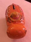 Vintage 60s 70s Chalkware Orange Floral Ceramic Bank Hippopotamus House Hippo