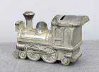 Vintage 1950’s Silver Plated Train Coin Piggy Bank Locomotive Engine / Hong Kong