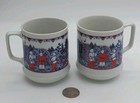 Set Of 2 Small Traditional Asian Inspired Mugs W/ Handles-landscape/people Scene