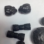 Lot 16 Antique Black Jet Carved Beads: Shou, Frogs, Chinese 243