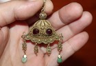Antique Chinese Import Vermeil Ruby Jade Conical Hat Pendant