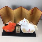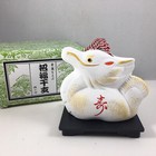 Japanese White Clay Lucky Shiba Inu Fuku Dog Eto Ornament Stand Screen Figurine