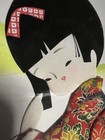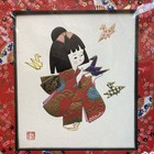 Vintage Japanese Oshie Puffy Doll Art Framed Textile Wall Hanging 10.5” X 11.5”