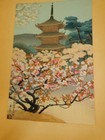 Original Uchida Woodblock Print Japan Pagoda Ninnajitemple Cherry Blossoms Asada