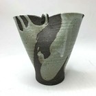 Shigaraki Ware Flower Vase Gray Brown Japanese Ikebana Tea Ceremony Marked