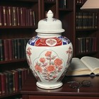 Otagiri Vtg Ginger Jar Asian Blue Pattern Red Floral Gold Accent Porcelain Lid