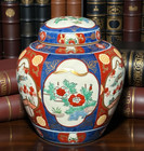 Japanese Hand-painted Imari Porcelain Temple Ginger Jar With Lid (7.75") Vintage