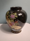 Japanese Interpur Porcelain Vase Black W Peacock Design Gold Green Purple Red +